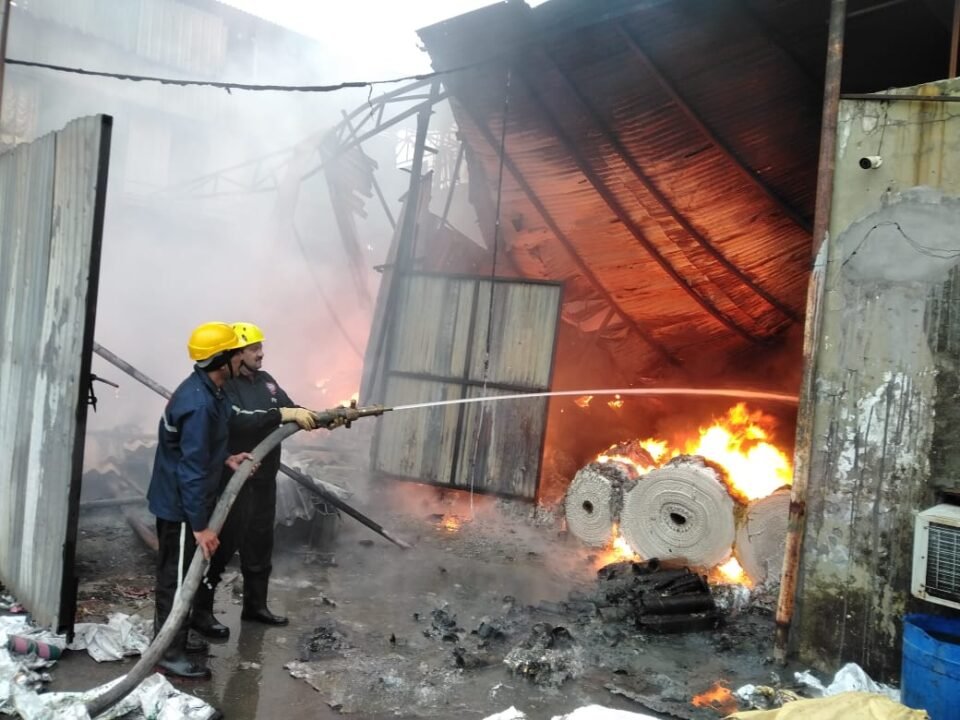 कट्टे बनाने की फैक्ट्री में लगी भीषण आग, लाखों का सामान जलकर स्वाहा