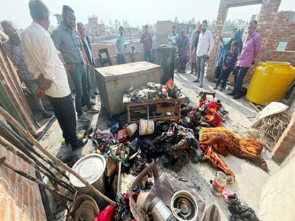 काशीपुर(आरएनएस)।  घर में लगी आग से लाखों का घरेलू सामान जलकर राख हो गया। परिजनों ने आसपास के लोगों की मदद से आग पर काबू पाया। मंगलवार को महुआखेड़ा गंज, आदर्शनगर निवासी धर्मेंद्र पुत्र कल्लू सिंह के घर में अज्ञात कारणों के चलते आग लग गई। इससे परिवार के सदस्यों में अफरा-तफरी मच गई। आग से घर में रखा फ्रिज, डबल बेड व घर का अन्य सामान जलकर राख हो गया। सूचना पर मौके पर पहुंचे पूर्व दर्जा राज्य मंत्री राजेश कुमार ने परिवार को ढांढस बंधाते हुए कहा जल्द ही परिवार को मुख्यमंत्री राहत कोष से आर्थिक सहायता दिलाने का प्रयास करेंगे। यहां नितिन कुमार, कुवंर पाल, हबीबुर्रहमान आदि मौजूद रहे।