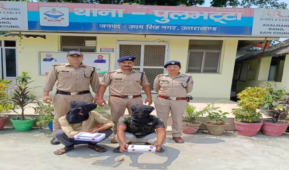 रुद्रपुर। किच्छा के पुलभट्टा पुलिस ने एक अवैध तमंचे व एक चाकू के साथ दो आरोपियों को गिरफ्तार कर लिया। पुलिस ने आरोपियों के खिलाफ केस दर्ज किया है। बीते सोमवार पुलभट्टा पुलिस को सूचना मिली कि पुलिस की पकड़ से फरार चल रहे दो आरोपी आपराधिक घटना की फिराक में शंकरफार्म कट के पास खड़े है। पुलिस ने मौके पर पहुंच कर आरोपियों को पकड़ लिया। आरोपियों के पास से एक 315 बोर का अवैध तमंचा, एक जिंदा कारतूस व एक चाकू बरामद किया। आरोपियों ने अपना नाम सरताज उर्फ बौरा पुत्र मो. हनीफ उर्फ रंगीला निवासी इन्द्रानगर सिरौलीकला वार्ड 20 थाना पुलभट्टा और नासिर पुत्र बाबू निवासी ग्राम भूड़ा भोजीपुरा बरेली हाल निवासी इन्द्रानगर सिरौलीकला वार्ड 20 थाना पुलभट्टा बताया। पूछताछ के दौरान आरोपी सरताज ने बताया कि वह प्रतिबंधित मांस के व्यापार के आरोप में बहेडी थाने से कई बार जेल जा चुका है। बहेडी पुलिस उनके पीछे लगी है। इसलिए वह लोग सिरौलीकलां मे रहकर प्रतिबंधित मांस का कारोबार कर रहे है। वह अपनी सुरक्षा के लिए तमंचा व चाकू रखते है। पुलिस ने आरोपियों के खिलाफ केस दर्ज कर लिया है।