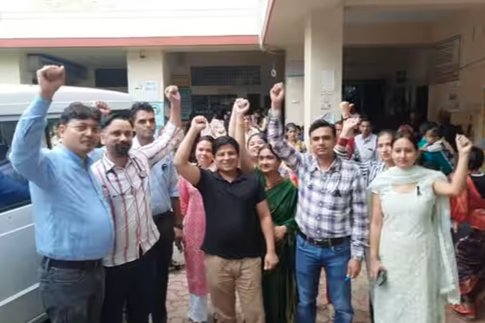 गिरफ्तारी की मांग को लेकर चिकित्सकों ने किया प्रदर्शन