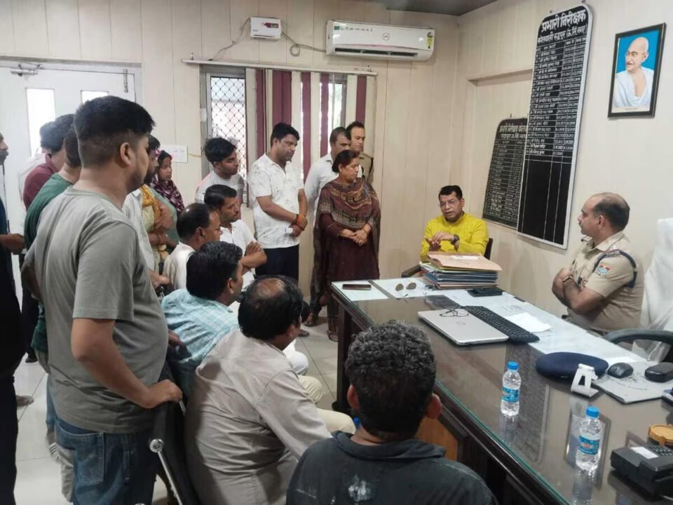 रुद्रपुर(आरएनएस)। आदर्श कॉलोनी घासमंडी क्षेत्र मे एक नाबालिग से घर मे घुसकर छेड़छाड़ का मामला में स्थानीय लोगो के साथ कोतवाली शनिवार को रुद्रपुर विधायक शिव अरोरा कोतवाली पहुंचे।सोमवार को उन्होंने कोतवाल से कोतवाल की और आरोपी के खिलाफ कार्यवाही की मांग की है। कहा की आरोपी युवकों ने नाबालिग से छेड़छाड़ की गयी। वही युवती की माता को धमाकाते हुए मामला निपटाने का दबाब बनाया गया। जिसके चलते युवती की माँ ने परेशान होकर आत्मदाह कर लिया। इस दौरान निवर्तमान मेयर रामपाल, कोतवाल धीरेन्द्र कुमार,आदर्श कॉलोनी चौकी इंचार्ज विजय सिंह,रंजीत सागर, अशोक कुमार, महेंद्र आर्य व अन्य लोग मौजूद रहे।