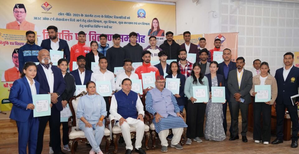 देहरादून(आरएनएस)।  मुख्यमंत्री पुष्कर सिंह धामी ने सोमवार को मुख्य सेवक सदन मेंविभिन्न पदों पर चयनित राज्य के 31 विशिष्ट खिलाड़ियों को खेल विभाग, गृह विभाग, युवा कल्याण एवं वन विभाग में आउट ऑफ टर्न सेवायोजन, परिवहन विभाग में 25 कनिष्ठ सहायकों तथा उद्यान विभाग में 28 सहायक लेखाकारों को नियुक्ति पत्र प्रदान किये। इस प्रकार कुल 84 अभ्यर्थियों को मुख्यमंत्री ने नियुक्ति पत्र वितरित किये।