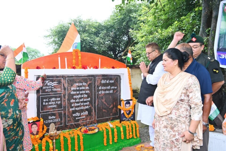 इस अवसर पर मंत्री गणेश जोशी ने कहा कि आजादी के अमृत वर्ष में प्रधानमंत्री मोदी के मार्गदर्शन में यह राष्ट्र के प्रति कृतज्ञता ज्ञापन का कार्यक्रम है। उन्होंने कहा राष्ट्रभक्ति से ओतप्रोत इस पुनीत कार्यक्रम में हर उत्तराखंड वासी आगे आकर अपनी सहभागीता निभा रहा है। इस दौरान मंत्री ने मेरी माटी मेरा देश अभियान में अधिक से अधिक संख्या में बढ़चढ़कर कार्यक्रम में हिस्सा लेने का भी आव्हान किया। इस अवसर पर कार्यक्रम में शहीदों के परिजन और ग्रामीण भी उपस्थित रहे।