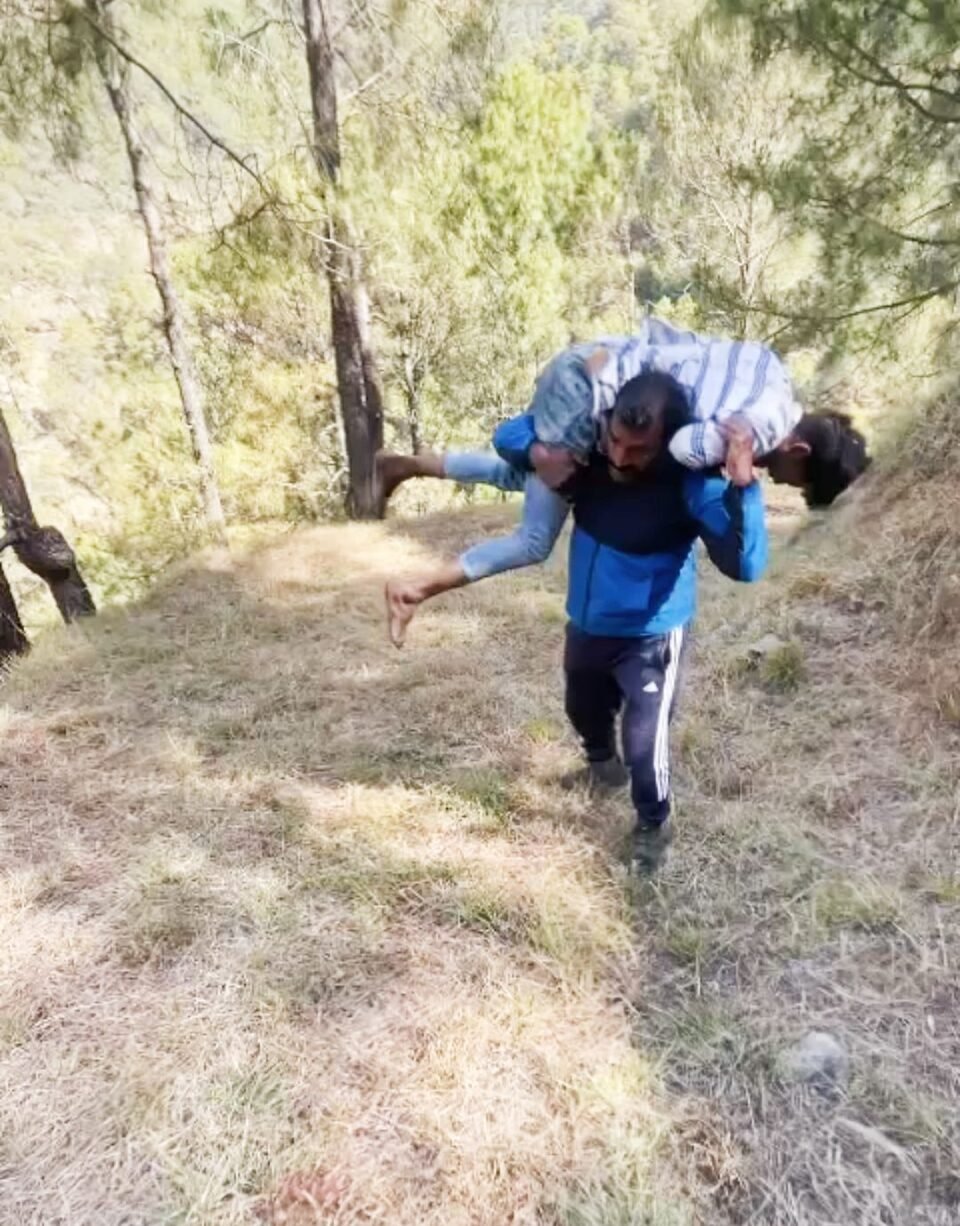 लापता घायल युवक को खाई से कंधे पर लादकर लाए थानाध्यक्ष भतरौजखान