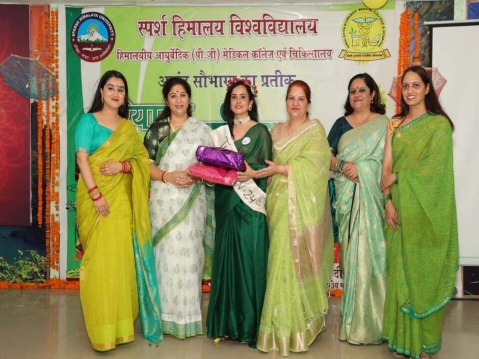 ऋषिकेश(आरएनएस)।  हिमालय आयुर्वेदिक पीजी मेडिकल कॉलेज में रविवार को आयोजित हरियाली तीज महोत्सव में जमकर धमाल हुआ, जिसमें वर्षा ने तीज क्वीन और निशा ने स्पार्क ऑफ तीज का खिताब जीता।कार्यक्रम का शुभारंभ राष्ट्रीय महामंत्री भाजपा महिला मोर्चा दीप्ति रावत, संस्थान की उपाध्यक्ष विदुषी निशंक, सनराइज एकेडमी की निदेशक पूजा पोखरियाल ने संयुक्त रूप से किया। दीप्ति रावत ने कहा कि महिलाएं परिवार की धुरी होती हैं। एक सशक्त महिला ही स्वस्थ समाज का निर्माण करती हैं। इस प्रकार के आयोजन हममें ऊर्जा का संचार करते हैं और हमारे अंदर सकारात्मकता लाते हैं। विदुषी निशंक ने कहा कि तीज सावन के महीने में आती है। तीज समृद्धि का भी सूचक है। हर महिला के भीतर कोई न कोई प्रतिभा छिपी हुई है। जरूरत है आत्मविश्वास के साथ उसे सामने लाने की। इस दौरान युवती और महिलाओं ने सांस्कृतिक प्रस्तुतियां दीं। जिसके बाद वर्षा को तीज क्वीन, निशा को स्पार्क ऑफ तीज का खिताब दिया गया। इस मौके पर तनु उनियाल, सुषमा ममगाईं, डॉ. ममता कुंवर, प्राचार्य नर्सिंग डॉ. अंजना विलियम, डॉ. रूपाली, डॉ. मनीषा आदि उपस्थित रहे।