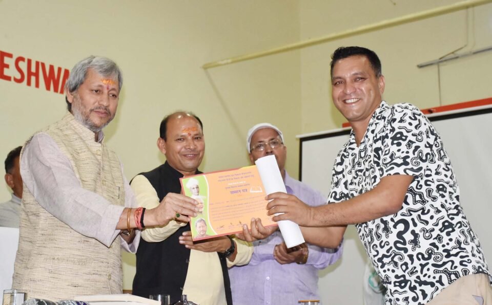 चमोली(आरएनएस)।  शिक्षक दिवस पर सांसद स्थानीय क्षेत्र विकास योजना के तहत गीता स्वामी राजकीय इंटरमीडिएट कॉलेज गोपेश्वर में पुस्तक वितरण सम्मान समारोह का आयोजन किया गया। इस दौरान जनपद के आठ शिक्षकों व 10 साहित्यकारों को पूर्व मुख्यमंत्री व गढ़वाल सांसद तीरथ सिंह रावत ने सम्मानित किया। इस दौरान जनपद के 108 विद्यालयों में लघु पुस्तकालय स्थापित करने के लिए पुस्तकों का वितरण भी किया गया।  गीता स्वामी राजकीय इंटरमीडिएट कॉलेज गोपेश्वर में आयोजित शिक्षक सम्मान समारोह का शुभारंभ पूर्व मुख्यमंत्री व गढवाल सांसद ने दीप प्रज्जवलित कर किया। इस दौरान उन्होंने शिक्षाविद् और पूर्व राष्ट्रपति डा. सर्वपल्ली राधाकृष्णन के चित्र का माल्यार्पण भी किया। उन्होनें कहा कि प्रधानमंत्री नरेंद्र मोदी ने राष्ट्रभाषा हिन्दी के संरक्षण और सवर्द्धन के लिए कार्य शुरु किया है। जिसके तहत हिंदी की पुस्तकों से दूर होती नई पीढ़ी को पुस्तकों से जोड़ने के उद्देश्य से विद्यालयों में लघु पुस्तकालय स्थापित किए जा रहे हैं। कहा कि दुनिया की सभी भाषाओं का जानना बुरा नहीं है। लेकिन अपनी राष्ट्रभाषा को भी संरक्षित करना आवश्यक है। वहीं उन्होंने इस दौरान शिक्षकों को शिक्षक दिवस की बधाई दी। कहा कि शिक्षक की जिम्मेदारी बढ़ी है। ऐसे में शिक्षकों का मैं स्वयं बहुत सम्मान करता हूँ। कार्यक्रम के दौरान सहित्यकार ज्योति बिष्ट, मुरली दिवान, रोशनी पोखरियाल, कुलदीप गैरोला, बृजेश रावत, दर्शन सिंह नेगी गढ़देशी, अनुराधा, भगत सिंह राणा ‘हिमाद’, शशि देवली, दीपक सती को प्रमाण पत्र व पुस्तक प्रदान कर सम्मानित किया गया। जबकि शिक्षक राकेश चंद्र थपलियाल, एकता नेगी, अनूप खंडूरी, बृजमोहन जोशी, मदन कपरवाण, गजपाल पुंडीर, रजनी नौटियाल व शिशुपाल सिंह बर्त्वाल को शिक्षक सम्मान प्रदान किया गया। कार्यक्रम के पश्चात जनपद के 108 विद्यालयों से आए शिक्षकों को लघु पुस्तकालय स्थापना के लिए पुस्तकों का वितरण किया गया। कार्यक्रम के दौरान गीता स्वामी राजकीय इंटरमीडिएट कॉलेज गोपेश्वर के छात्र-छात्राओं ने सरस्वती वंदना और स्वागत की गीत प्रस्तुति भी दी।  इस मौके पर मुख्य शिक्षा अधिकारी धर्म सिंह, भाजपा जिलाध्यक्ष रमेश मैखुरी, शिक्षा अधिकारी बेसिक श्रीकांत पुरोहित, आयोजन समिति के संयोजक मुकेश कुमार, कर्मवीर सिंह, बल्लभ प्रसाद थपलियाल, मोहन सिंह नेगी आदि मौजूद थे। कार्यक्रम का संचालन कुंवर सिंह रावत ने किया।