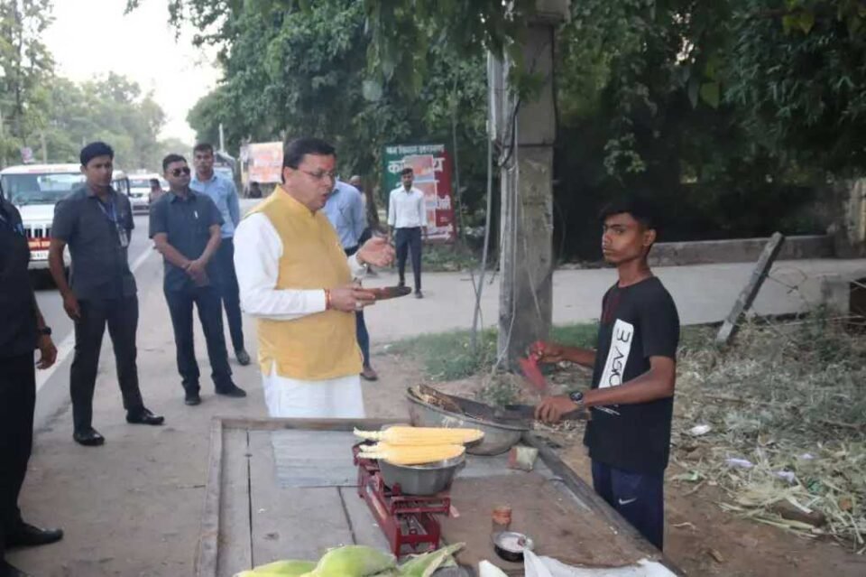 सीएम धामी ने रुक कर भुट्टे का लिया स्वाद