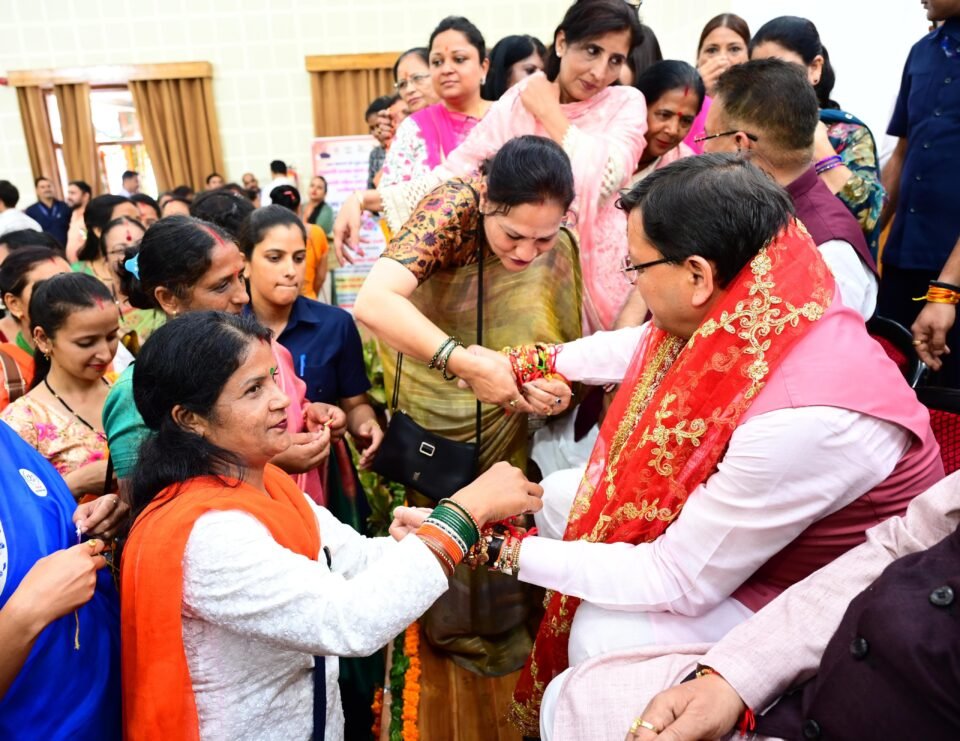देहरादून(आरएनएस)। मुख्यमंत्री पुष्कर सिंह धामी ने रक्षाबंधन के अवसर पर शुक्रवार को मुख्यमंत्री आवास में ‘मुख्यमंत्री सशक्त बहना उत्सव योजना’ एवं मुख्यमंत्री महिला स्वयं सहायता समूह सशक्तिकरण योजना के अन्तर्गत राज्य स्तरीय कार्यक्रम में प्रतिभाग किया। इस अवसर पर मुख्यमंत्री ने चार जनपदों से आए प्रतिभागियों में से 10 सहायता समूह को रिवॉल्विंग फण्ड के रूप में 25-25 हजार रुपये, 10 समूह को सीआईएफ के रूप में 75-75 हजार रुपये एवं सीसीएल के रूप 1 लाख 50 हजार रुपये की धनराशि के चेक प्रदान कर उन्हें सम्मानित किया। इस अवसर पर प्रदेश के विभिन्न क्षेत्रों से आई महिलाओं ने मुख्यमंत्री को रक्षा सूत्र बांधा तथा उनके दीर्घायु की कामना की।
