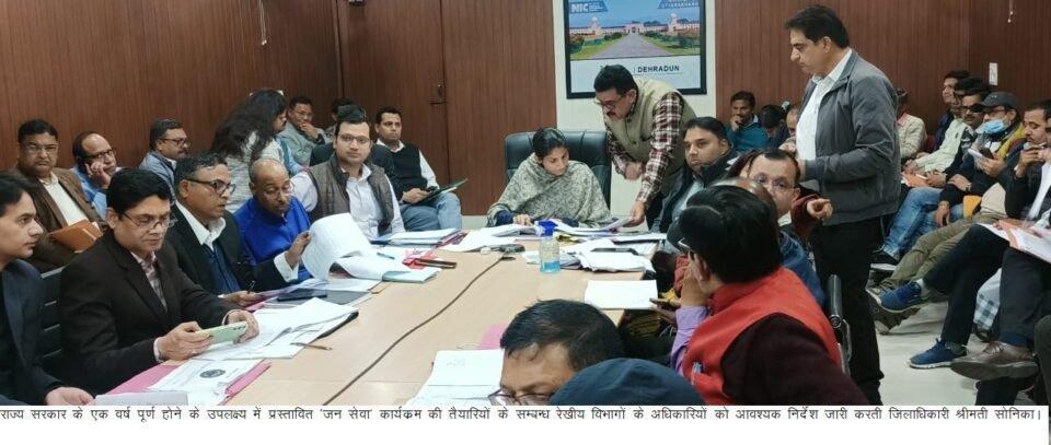 जिलाधिकारी सोनिका ने जनपद में प्रस्तावित ‘जन सेवा’ कार्यक्रम को सफल बनाने हेतु एनआईसी सभागार कलेक्ट्रेट में जिला स्तरीय अधिकारियों के साथ बैठक कर, कार्यक्रम स्थल पर बहुउद्देशीय शिविर लगाने हेतु आवश्यक दिशा-निर्देश दिए। उन्होंने मुख्य विकास अधिकारी को कार्यक्रम स्थल पर सूचना विभाग के साथ समन्वय करते हुए विभागों के स्टाॅल लगवाकर जनकल्याणकारी योजनाओं से लाभान्वित करने के निर्देश दिए। मुख्य चिकित्साधिकारी को निर्देशित किया कि कार्यक्रम स्थल पर स्टाॅल लगाकर निःशुल्क चिकित्सा परामर्श, जांच, दवाई वितरण आदि से जनमानस को लाभान्वित करना सुनिश्चित करगें। कृषि, पशु चिकित्सा, समाज कल्याण, महिला सशक्तीकरण एवं बाल विकास, उद्यान आदि रेखीय विभागों के अधिकारियों को अपने विभाग से सम्बन्धित योजनाओं से जनमानस को लाभान्वित करने के निर्देश दिए। उन्होंने मुख्य विकास अधिकारी को निर्देशित किया कि 24 मार्च से 30 मार्च 2023 तक विधानसभावार विकासखण्ड स्तर पर बहुउद्देशीय शिविर लगाने हेतु अधिकारियों को नामित करें। जिलाधिकारी ने रेंजर्स ग्राउण्ड में आयोजित होने वाले मुख्य कार्यक्रम में सम्बन्धित अधिकारियों को विभिन्न व्यवस्थाएं बनाने के साथ ही कार्यक्रम स्थल पर सफाई इत्यादि समुचित व्यवस्थाओं को दुरस्त बनाये रखने के दिशा निर्देश दिए।