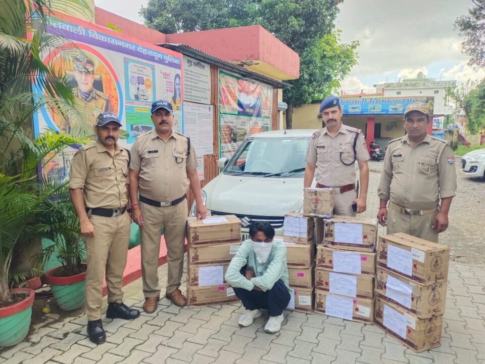 विकासनगर।   पंचायत चुनाव शुरू होते ही पछुवादून में शराब की तस्करी शुरू हो गई है। बुधवार सुबह एक कार में चंडीगढ़ से बाड़वाला चुनाव के लिए लाई जा रही 16 पेटी शराब के साथ पुलिस ने एक व्यक्ति को गिरफ्तार किया है। पुलिस ने आरोपी के खिलाफ आबकारी अधिनियम में मुकदमा दर्ज कर कार को सीज कर दिया है। पुलिस को कार चालक ने बताया कि शराब चंढीगढ़ से एक व्यक्ति ने कार में भरवाई थी और बाड़वाला में छोड़ने को कहा था। कोतवाल विनोद गुसाईं ने बताया कि एसएसपी ने चुनाव को देखते हुए अवैध शराब और नशे पर सख्त कार्रवाई करने के निर्देश दिए हैं। बताया एसएसपी के निर्देशों के बाद सभी चौकी प्रभारियों एवं हल्का प्रभारियों को सघन चेकिंग अभियान चलाए जाने के निर्देश दिए गए हैं। बताया कि बुधवार सुबह को कुल्हाल चौकी पुलिस कुल्हाल बैरियर पर चेकिंग कर रही थी। इस दौरान एक कार को रोकने का प्रयास किया तो वह तेजी से कुंजा की तरफ भाग गया। संदिग्ध लगने पर कुल्हाल चौकी पुलिस और बाजार चौकी पुलिस ने उसका पीछा किया। इसके बाद कुल्हाल पावर हाउस इंटैक से पहले तिराहे पर पहुंची टीम को एक सफेद रंग की गाड़ी खड़ी दिखाई दी। पुलिस ने जब कार को चेक किया तो कार में चंडीगढ़ ब्रांड की 16 पेटी अंग्रेजी शराब के 480 पव्वे और 120 अध्धे बरामद किए गए। कार चालक की पहचान बलिन्दर निवासी ग्राम संभालका पोस्ट लाड़वा थाना लाड़वा जनपद कुरुक्षेत्र हरियाणा के रूप में हुई है। पुलिस ने कार चालक से जब भारी मात्रा में शराब ले जाने का लाइसेंस मांगा तो वह दिखा नहीं पाया। जिसके बाद शराब को जब्त कर कार को सीज कर लिया गया। कार चालक को गिरफ्तार कर उसके खिलाफ आबकारी ऐक्ट में मुकदमा दर्ज किया गया है।