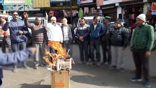 पटवारी लेखपाल भर्ती परीक्षा का पेपर लीक मामले में नौगांव मंडल के कांग्रेस कार्यकर्ताओं ने मुख्य बाजार में प्रदेश सरकार के खिलाफ नारेबाजी की। कांग्रेसियों ने भर्ती घोटाले में सरकार का हाथ बताते हुए मामले की सीबीआई जांच की मांग की। शनिवार को नौगांव मुख्य चौराहे पर एकत्रित कांग्रेसियों ने सेवा दल के जिलाध्यक्ष श्याम सिंह राणा के नेतृत्व में सरकार का पुतला जलाया। राणा ने कहा कि प्रदेश सरकार भर्ती परीक्षाओं को पारदर्शिता के साथ संपन्न करवाने में नाकाम साबित हो रही है। इससे प्रदेश के बेरोजगार नौजवानों का भविष्य खतरे में है। युवाओं के भविष्य से बड़ा खिलवाड़ हुआ है। कार्यकर्ताओं ने भर्ती घोटाले की जांच सीबीआई से कराने की मांग रखी। साथ ही पेपर लीक प्रकरण के दोषियों के खिलाफ कड़ी कार्यवाही की मांग की इस दौरान कांग्रेस पार्टी सेवादल के जिला अध्यक्ष श्याम सिंह राणा, जिला किसान कांग्रेस कमेटी के अध्यक्ष दीवान सिंह चौहान, राजेश रावत, आशीष रावत, तारा लाल, बर्फियालाल, राम प्रसाद सेमवाल, सोहन सिंह आदि कार्यकर्ता थे।