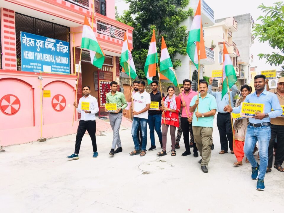 आजादी के अमृत महोत्सव के अंतर्गत स्वतंत्रता दिवस पर्व पर विशेष रूप से देश के ग्रामीण अंचलों में प्रत्येक घर में तिरंगा फहराने के लिए युवा मंडलों द्वारा घर-घर जाकर लोगो को जागरूक किया जा रहा है। जिसमें नेहरू युवा केंद्र के युवा मंडल अहम भूमिका निभा रहे हैं। नेहरू युवा केंद्र, युवा कार्यक्रम, खेल मंत्रालय भारत सरकार द्वारा कार्यालय में युवाओं की बैठक का आयोजन किया गया। बैठक मे विभिन्न विकास खंडों के 40 स्वयंसेवकों ने भाग लिया एवं विभिन्न कॉलोनियो में हर घर तिरंगा रैली निकाली गई। बैठक में जिला युवा अधिकारी रविंद्र सिंह ने कहा कि प्रधानमंत्री के आह्वान पर देश भर में हर घर तिरंगा कार्यक्रम आयोजित करने के लिए लोगों को प्रेरित किया जाएगा। इसके लिए जनपद के प्रत्येक विकासखंड में युवा मंडलों का गठन किया जा रहा है। उन्होंने बताया कि तिरंगा यात्रा और हर घर तिरंगा कार्यक्रम को सफल बनाने के लिए 225 नेहरू युवा मंडल का गठन किया जाना है। विभाग के लेखा एवं कार्यक्रम सहायक धर्म सिंह रावत ने कहा कि जनपद में विभिन्न तिथियों में युवा मंडल विकास कार्यक्रम आयोजित किया जा रहा है। जिसमें युवा मंडल बनाए जाएंगे। स्वच्छता पखवाड़ा कार्यक्रम के अंतर्गत नुक्कड़ नाटक, क्विज प्रतियोगिता ,निबंध प्रतियोगिता एवं सेमिनार का आयोजन भी किया जा रहा हंैं। रोहित पाल अध्यक्ष नारसन युवा मंडल ने कहा कि आजादी के अमृत महोत्सव के अंतर्गत विकासखंड नारसन में 75 फलदार वृक्ष लगाए जाएंगे। बैठक में सतीश कुमार, दीपक कुमार, अनुज, भावना आदि मौजूद रहे।