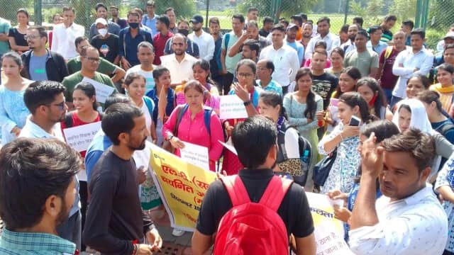 सहायक अध्यापक पदों में नियुक्ति की मांग को लेकर एलटी चयनित अभ्यर्थियों ने शिक्षक दिवस के अवसर पर सोमवार को सीएम आवास कूच किया। वे तत्काल नियुक्ति की मांग कर रहे हैं। हालांकि पुलिस ने हाथीबड़कला पर ही उन्हें रोक दिया। चयनित अभ्यर्थी अमित डंगवाल ने कहा कि एलटी शिक्षक भर्ती परीक्षा परिणाम 31 दिसंबर 2021 को जारी हुआ था। 8 माह बाद भी अभी तक अभ्यार्थियों को नियुक्ति प्राप्त नहीं हुयी है। पिछले महीनों से अभ्यर्थी मुख्यमंत्री, शिक्षामंत्री, माध्यमिक शिक्षानिदेशक, शिक्षा महानिदेशक यूकेएसएसएससी सचिव व अध्यक्ष से इस सम्बन्ध में कई बार मुलाकात व ज्ञापन सौंप चुके है। किन्तु अभी तक इस पर कोई कार्यवाही नहीं हुई है।जिस से गुस्साए अभ्यर्थियों ने सीएम आवास कूच किया। पुलिस के रोकने पर वे वही धरने पर बैठ गए।