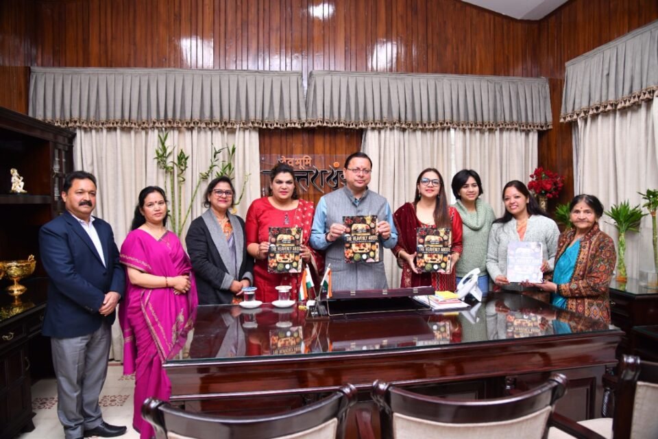 मुख्यमंत्री पुष्कर सिंह धामी ने शनिवार को मुख्यमंत्री कैम्प कार्यालय में पहाड़ी खाने की रेसेपी पर आधारित पुस्तक “The Heavenly Abode” पुस्तक का विमोचन किया। मुख्यमंत्री ने कहा कि स्थानीय उत्पादों एवं व्यंजनों को बढ़ावा देने की दिशा में यह सराहनीय प्रयास है। प्रधानमंत्री नरेन्द्र मोदी जी ने वोकल फॉर लोकल की जो बात कही है। उस दिशा में यह एक अच्छा प्रयास है। मुख्यमंत्री ने कहा कि प्रधानमंत्री ने सभी से अपनी यात्रा व्यय की 5 प्रतिशत धनराशि स्थानीय उत्पादों के क्रय पर व्यय करने की बात कही है।