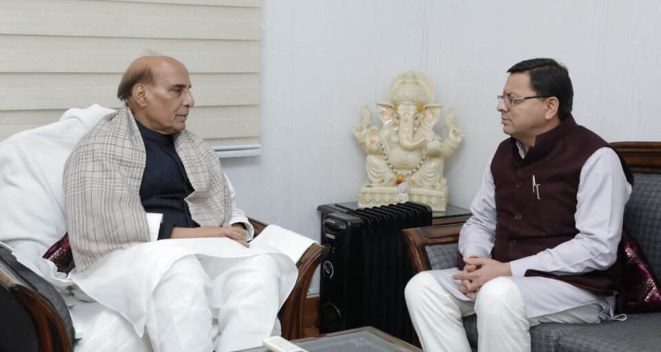 उत्तराखण्डसीएम धामी ने की नई दिल्ली में केंद्रीय रक्षा मंत्री राजनाथ सिंह से शिष्टाचार भेंट by December 21, 2022December 21, 20220114 Share0 देहरादून, parvatsankalp,21,12,2022 मुख्यमंत्री पुष्कर सिंह धामी ने बुधवार को नई दिल्ली में केंद्रीय रक्षा मंत्री राजनाथ सिंह से उनके आवास पर शिष्टाचार भेंट की।