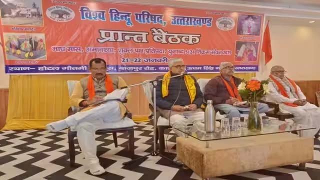 विश्व हिन्दू परिषद की दो दिवसीय प्रांत स्तरीय मंथन बैठक का शनिवार को शुभारंभ किया गया। इसमें संगठन से लोगों को जोड़ने और विहिप को मजबूत बनाने पर मंथन किया गया। शनिवार को बाजपुर रोड स्थित एक होटल में आयोजित बैठक का आरएसएस के क्षेत्रीय प्रचारक महेंद्र व विहिप के केद्रीय मंत्री कोटेश्वर ने संयुक्त रूप से राम दरबार के समक्ष दीप प्रज्ज्वलित कर शुभारंभ किया। बैठक के दौरान लोगों को संगठन से जोड़ना, संगठन को मजबूत करना व धर्म के प्रति आपत्तिजनक टीका टिप्पणी करने वालों को संयमित रूप से जवाब देना आदि विषयों पर चर्चा की गई। साथ ही संगठन द्वारा पिछले छह माह में किए गए कार्यों की समीक्षा की गई और अगले छह माह में संगठन द्वारा किए जाने वाले कार्यक्रमों को लेकर चर्चा की गई। बैठक को संबोधित करते हुए क्षेत्रीय प्रचारक महेंद्र ने कहा कि अक्सर लोग बाहर के लोगों को अपने घर ले आते हैं, जो बाद में परेशानी का सबब बनते हैं। इसके चलते समाज में लव जेहाद जैसी घटनाएं आए दिन सुनने को मिल रही हैं। बैठक को चार चरणों में बांटा गया। इसमें सुबह प्रात: स्मरण, दोपहर को सत्र, शाम को सत्र व रात में दीप विसर्जन किया गया। इस दौरान विहिप के प्रांत अध्यक्ष रविदेवानंद, सह प्रांत मंत्री रनदीप, विपिन पांडेय, सोहन सोलंकी आदि मौजूद रहे।