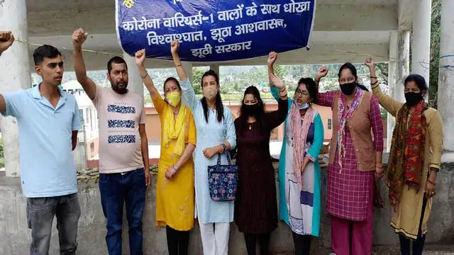 नौकरी बहाली की मांग को लेकर धरने पर बैठे कोविड संविदा स्वास्थ्य कर्मियों की सुध लेने वाला कोई नहीं है। पांच दिन बाद ही सरकारी तंत्र ने प्रशिक्षित बेरोजगार युवाओं की मांग को लेकर कोई पहल नहीं की। यहां तक उनसे मुलाकात भी नहीं की। इससे आक्रोशित कोविड संविदा स्वास्थ्य कर्मियों का कहना है कि वे भी हार मानने वाले नहीं हैं। बगैर अपना हक लिए वे नही मानेंगे। नगर में कोविड संविदा स्वास्थ्य कर्मियों का धरना पांचवें दिन भी जारी रहा। बुधवार को टकाना रामलीला मैदान स्थित धरना स्थल पहुंचकर उन्होंने सरकार के खिलाफ जमकर नारेबाजी की और प्रदर्शन करने के बाद धरने पर बैठ गए। युवाओं ने शासन-प्रशासन पर गुमराह करने का आरोप लगाया। कहा मुश्किल वक्त में कोरोना संक्रमण को नजरअंदाज कर सरकार का साथ दिया, लेकिन अब कोविड कम हुआ तो सरकार ने उन्हें बाहर कर दिया। कर्मियों के विरोध-प्रदर्शन को देख सरकार से उन्हें आश्वासन जरूर मिला, लेकिन नियुक्ति नहीं। इसके विपरीत अन्य लोगों को नौकरी में रखा जा रहा है। यह सरासर गलत है। यहां पवन नगरकोटी, कुंडल सिंह, मोहित रावल, प्रेम कुमार, मेघा, संगीता, कंचन, स्तुति, कमला रहीं।