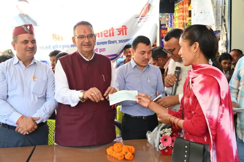 मंत्री गणेश जोशी ने सहस्त्रधारा में आपदा प्रभावित दुकानदारों को सहायता राशि के चैक वितरित किए