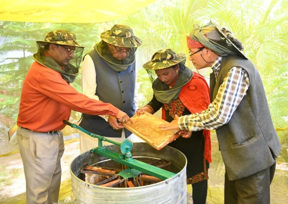 कृषि मंत्री जोशी ने कहा प्रदेश को शहद एवं सह-मौन उत्पादों के क्षेत्र में विशिष्ट स्थान दिलाने हेतु सरकार द्वारा 110 करोड़ से अधिक की लागत से मौनपालन नीति अनुमोदित की गयी है, जिसके अन्तर्गत विस्तृत वेल्यूचैन स्थापित करते हुए मौनपालकों तथा कृषकों को 80 प्रतिशत तक अनुदान से लाभान्वित करने की व्यवस्था की गयी है। उत्तराखण्ड में उत्पादित होने वाला शहद उच्च गुणवत्ता युक्त है। सरकार के विभिन्न प्रयासों के माध्यम से शहद उत्पादन के लिए किसानों को बेहतर सुविधाएं और प्रशिक्षण दिया जा रहा है। उन्होंने कहा सरकार का प्रयास है कि किसानों की आय दोगुनी हो उस दिशा में यह शहद उत्पादन से जुड़कर कृषक अधिक से अधिक लाभ प्राप्त कर सकते है।