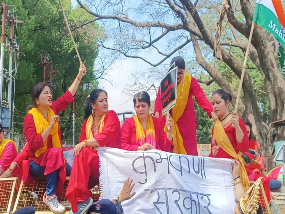 देहरादून : महिला कांग्रेस का सीएम आवास कूच, लाल कपड़ों में किया प्रदर्शन