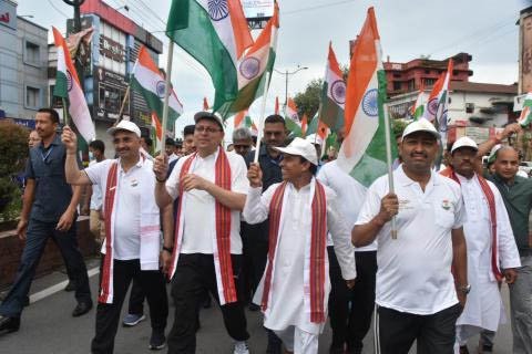 सीएम पुष्कर सिंह धामी ने मंगलवार सुबह गांधी पार्क से आजादी के अमृत महोत्सव के तहत हर घर तिरंगा अभियान का शुभारंभ किया। शिक्षा विभाग की ओर से आयोजित कार्यक्रम में सीएम ने कहा कहा कि आजादी का महोत्सव महत्वपूर्ण महोत्सव है, यह समय उन लोगों को नमन करने का है, जिन्होंने देश की आजादी के लिए अपना सब कुछ न्यौछावर किया है। सीएम ने कहा कि जब हम उत्तराखंड का 25वां स्थापना दिवस मनाएंगे उत्तराखंड हर क्षेत्र में आगे होगा। इसके लिए हम संकल्प के साथ काम कर रहे हैं। मुख्यमंत्री पुष्कर सिंह धामी ने कहा कि देश में आजादी का अमृत महोत्सव के तहत अनेक कार्यक्रमों का आयोजन किया जा रहा है। देश की आजादी के लिए अपने प्राणों का बलिदान देने वाले क्रांतिकारियों का स्मरण पूरा देश कर रहा है। उन्होंने सभी प्रदेशवासियों से आह्वान किया कि 13 से 15 अगस्त 2022 तक ‘हर घर तिरंगा अभियान के तहत सभी अपने घरों में तिरंगा लगाएं। मुख्यमंत्री ने कहा कि आगामी 25 साल देश का अमृत काल होगा। भारत की स्वतंत्रता के लिए अपना अहम योगदान देने वाले हमारे क्रान्तिकारियों एवं स्वतंत्रता सेनानियों की वीर गाथाएं हमारी युवा पीढ़ी को प्रेरणा देती रहेंगी। मुख्यमंत्री ने कहा कि हमारे नौनिहाल देश का भविष्य हैं। मुख्यमंत्री पुष्कर सिंह धामी ने कहा कि 2025 में उत्तराखंड राज्य स्थापना की रजत जयंती मनायेगा। तब तक उत्तराखण्ड हर क्षेत्र में देश के श्रेष्ठ राज्यों में शामिल हो इस दिशा में राज्य सरकार प्रयासरत है। सभी विभागों का प्रदेश के समग्र विकास के लिए 10 साल का रोडमैप बनाने एवं तीन साल में कौन से महत्वपूर्ण कार्य धरातल पर कर सकते हैं, लक्ष्य दिया गया है। विकल्प रहित संकल्प के साथ राज्य सरकार आगे बढ़ रही है। उन्होंने कहा कि तिरंगा हमारा मान, सम्मान एवं स्वाभिमान है। उन्होंने कहा कि हर घर तिरंगा अभियान को आज से 15 अगस्त तक व्यापक स्तर पर चलाया जाए। शिक्षा मंत्री डॉ. धन सिंह रावत ने कहा कि आज ‘हर घर तिरंगा अभियान के तहत देहरादून की धरती पर हजारों लोगों द्वारा तिरंगा यात्रा में प्रतिभाग किया जा रहा है। 13 अगस्त से 15 अगस्त तक ‘हर घर तिरंगा लगे इसके लिए व्यापक स्तर पर जागरूकता अभियान चलाया जा रहा है। इस अवसर पर विधायक खजान दास, मेयर सुनील उनियाल गामा, डीजीपी अशोक कुमार, जिलाधिकारी देहरादून सोनिका, एसएसपी दलीप सिंह कुंवर, शिक्षा महानिदेशक वंशीधर तिवारी आदि उपस्थित थे। वहीं दूसरी ओर आईटी पार्क तिराहे पर तिरंगा यात्रा में भी मुख्यमंत्री पुष्कर सिंह धामी ने हिस्सा लिया। यहां कुछ सेकंड के लिए रुके और उसके बाद गाड़ी में बैठ कर चले गए। इस दौरान लोगों ने जोरदार नारेबाजी की। लोगों ने भारत माता की जय के नारे लगाए।