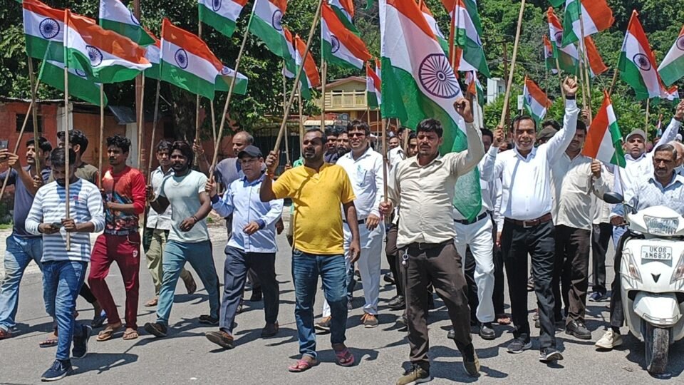 हरिद्वार इंडस्ट्रीयल एरिया डेवलपमेंट एसोसिएशन द्वारा आजादी के अमृत महोत्सव के तहत तिरंगा यात्रा का आयोजन किया गया। एसोसिएशन के अध्यक्ष प्रभात कुमार एवं महामंत्री विनीत धीमान के संयोजन में निकाली गयी तिरंगा यात्रा में बड़ी संख्या में उद्योगपति शामिल हुए और इंडस्ट्रियल एरिया में स्थित सभी औद्योगिक इकाईयों व घरों में तिरंगा लगाने के लिए जनजागरण करते हुए तिरंगे वितरित किए। प्रभात कुमार एवं विनीत धीमान ने कहा कि उत्साह से आजादी का अमृत महोत्सव मनाते हुए देश को आजाद कराने के लिए प्राणों का बलिदान करने वाले शहीदों को नमन करें। तिरंगा यात्रा में एसोसिएशन के उपाध्यक्ष सुखदेव सिंह, महासचिव सागर मनचंदा, कोषाध्यक्ष सुरेश फूलवानी, सचिव सागर मनचंदा, गौरव गुप्ता, रवि जैन, राजू बडौदा, रंजन, अजय पाठक, विशाल माथुर, राजकुमार शर्मा, प्रदीप सहगल, रविंद्र सहगल, दिव्यांश, प्रवेश सिंह, भूटान मल्होत्रा आदि शामिल रहे।
