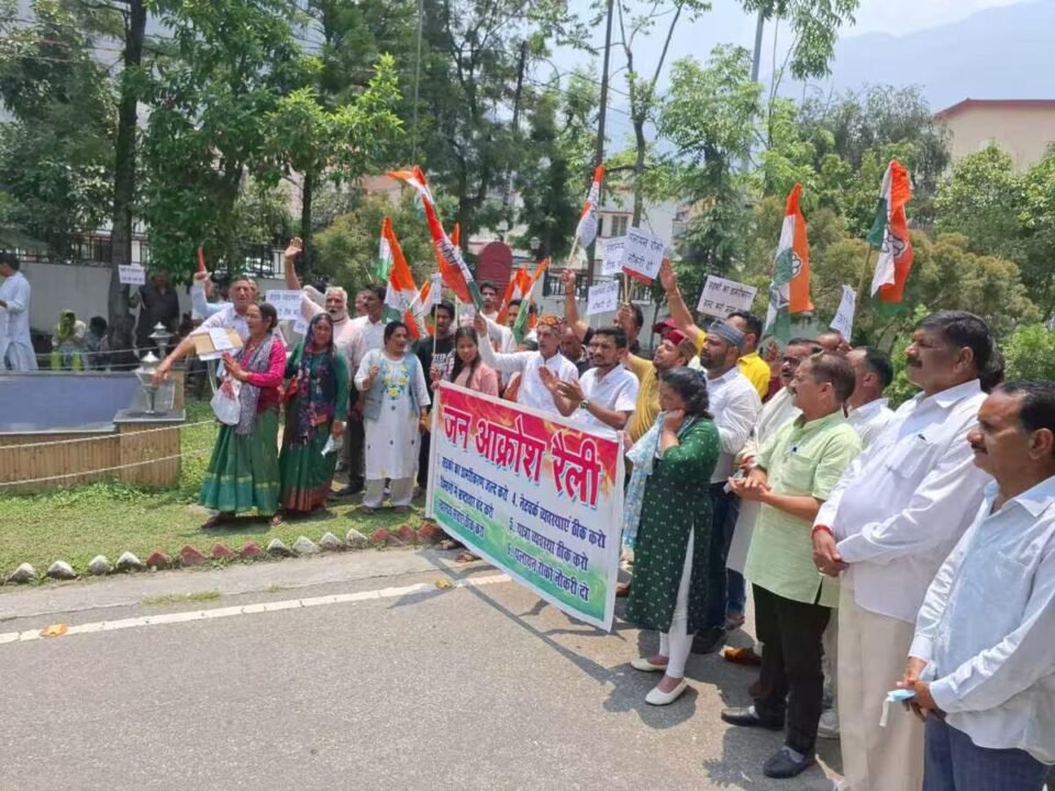 उत्तरकाशी(आरएनएस)। सड़कों का डामरीकरण, बदहाल स्वास्थ्य सेवा एवं यात्रा व्यवस्थाओं सहित पांच सूत्रीय मांग को लेकर जिला कांग्रेस कमेटी के कार्यकर्ताओं ने सोमवार को जिला मुख्यालय में जूलूस निकालकर प्रदर्शन किया। इस मौके पर कांग्रेसियों ने डीएम को ज्ञापन प्रेषित किया और शीघ्र समस्याओं के निस्तारण की मांग की। सोमवार को जिला कांग्रेस कमेटी के कार्यकर्ता पेट्रोल पंप ज्ञानसू में एकत्रित हुए। यहां से सभी कार्यकर्ता जुलूस के रूप में गंगोत्री हाईवे होते हुए बस अड्डा व भटवाड़ी रोड से कलक्ट्रेट पहुंचे। यहां पर कांग्रेसियों ने सरकार और प्रशासन के विरुद्ध नारेबाजी कर प्रदर्शन किया। इस मौके पर कांग्रेसियों ने कहा कि जिला मुख्यालय में बडेथी ओपन टनल से लेकर गंगोरी तक सड़क बदहाल स्थिति में है। डामरीकरण न होने से सड़क पर जगह-जगह गड्ढे बने हैं। इससे चारधाम यात्रा पर आने वाले तीर्थ यात्रियों सहित स्थानीय लोगों का सड़क पर चलना दूभर हो गया है। वहीं जिला अस्पताल में स्वाथ्यय सेवायें बदहाल हैं, चिकित्सकों के आभाव के कारण अस्पताल रेफर सेंटर बनकर रह गया है। जिससे दूर दराज क्षेत्र से आने वाले मरीजों को हायर सेंटर देहरादून और ऋषिकेश का रूख करना पड़ रहा है। उन्होंने विभागों में फैले भ्रष्टाचार, नेटवर्क व्यवस्थाएं, पलायन सहित अन्य मांगों का ज्ञापन प्रेषित किया और समस्याओं के निस्तारण की मांग उठाई। प्रदर्शनकारियों में जिला कांग्रेस कमेटी के जिलाध्यक्ष मनीष राणा, पूर्व जिलाध्यक्ष घनानंद नौटियाल, विजय सेमवाल, विजेन्द्र नौटियाल, कमल सिंह रावत, पवित्रा राणा, दशरथ सेमवाल, राखी राणा, मनोज राही, दीपक रावत, आदि कांग्रेसी मौजूद रहे।