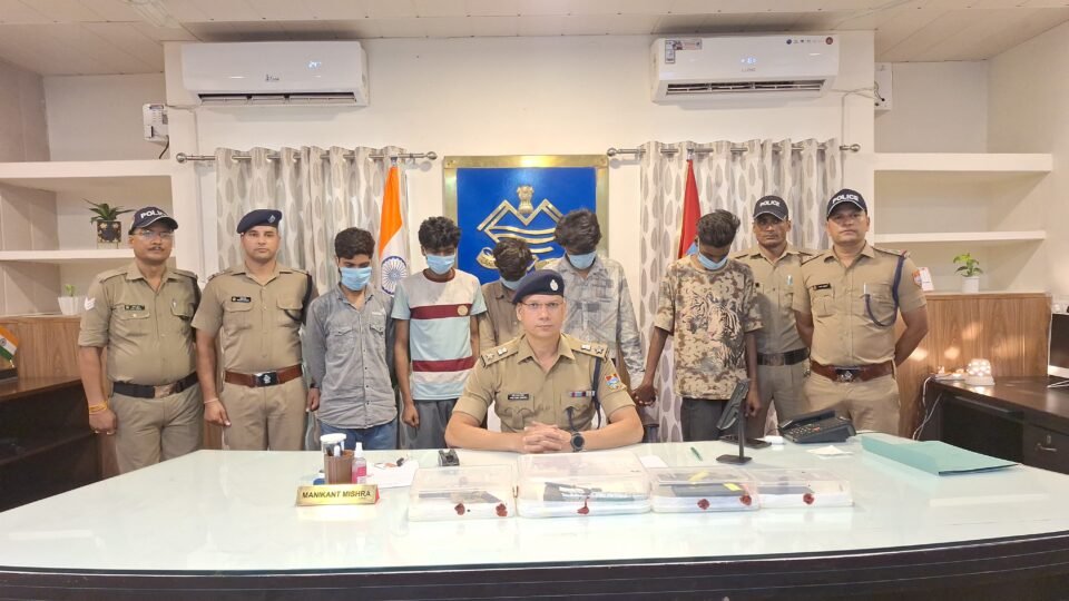 देहरादून। एसएसपी मणिकांत मिश्रा ने संगठित अपराधियों पर करारा प्रहार किया है। 09 वाहन, 09 मोबाइल और हथियार सहित 05 शातिर लूटेरे गिरफ्तार किए गए हैं। वरिष्ठ पुलिस अधीक्षक द्वारा अपराध और अपराधियो के विरूद्ध कार्यवाही के निर्देशानुसार थाना ट्रांजिट कैम्प पुलिस टीम द्वारा आगामी त्रिस्तरीय पंचायत सामान्य निवार्चन 2025 के दृष्टिगत शान्ति व्यवस्था प्रभावित करने पर 05 व्यक्तियो को लूट और चोरी की मोटर साईकिल, मोबाईल मय अवैध तमचे के साथ गिरफ्तार किया गया है।