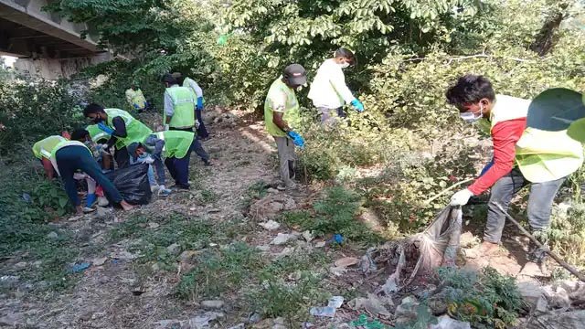 वन क्षेत्र में फैले कूड़े की सफाई की